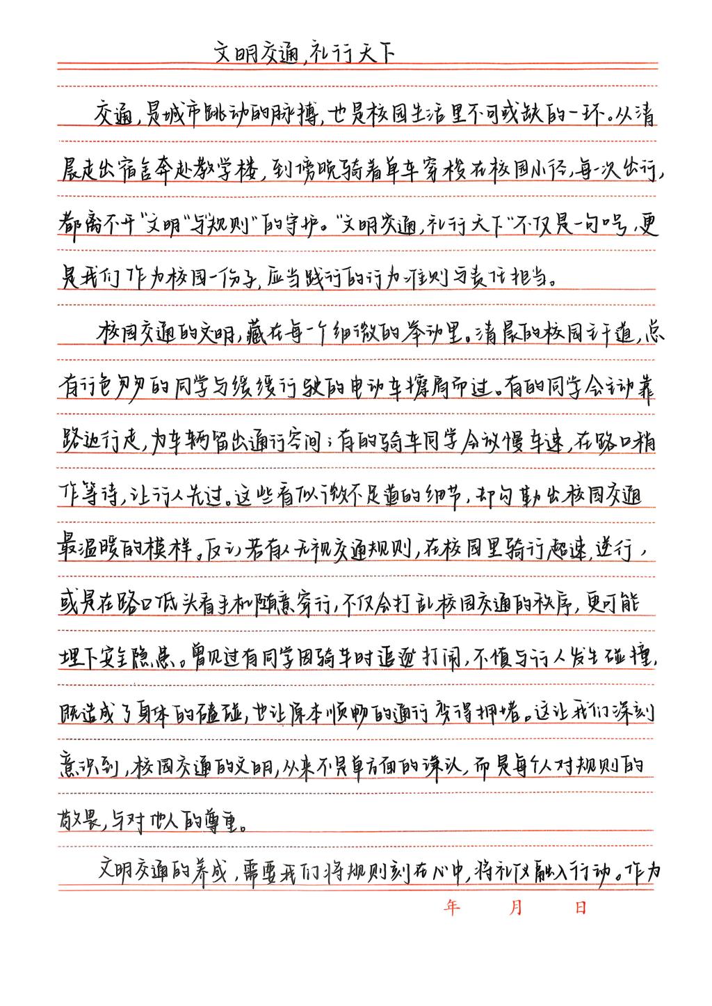 本次活动面向全院学生征集征文、绘画、短视频三类作品,各类作品均有明确提交要求:征文需手写完成,以相机扫描件形式提交,字数控制在800-1200字,且字体工整规范;绘画作品同样以相机扫描件形式提交;短视频作品支持3至5人组队创作。活动启动后,全院同学踊跃响应,纷纷结合自身创意构思作品,同学们表示,此次活动既能传递交通安全理念,又能发挥个人特长,大家都愿意积极参与其中。